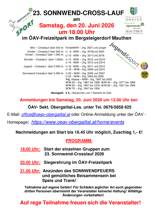 Sonnwendcrosslauf 2024 wurde wegen zu geringer Teilnehmerzahl abgesagt
